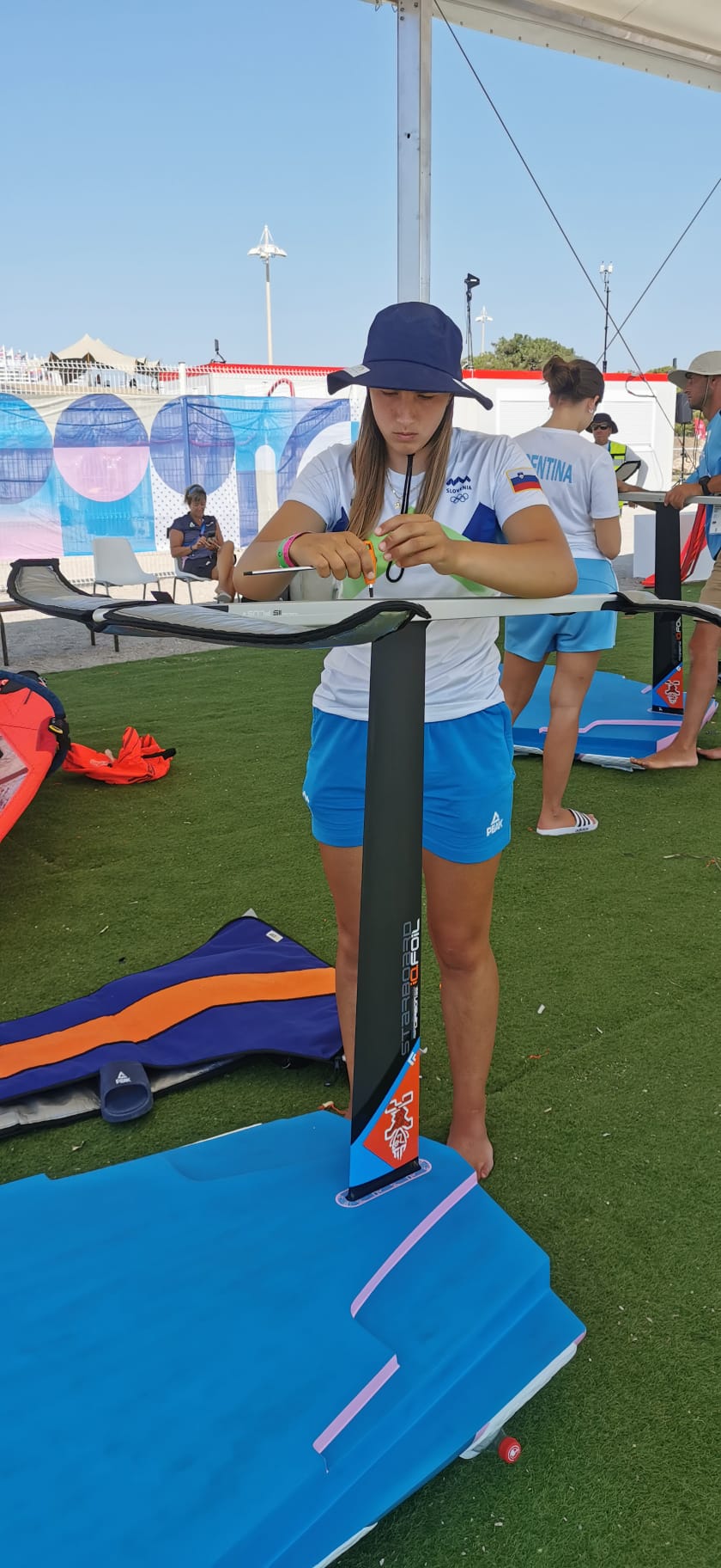 V Marseillu, na prizorišču olimpijskih jadralnih nastopov, smo dočakali prvi regatni dan tudi za naše jadralce. Prva je bila na sporedu ženska flota iQFOiL, kjer bi danes morala v konkurenci 24 jadralk nastopiti tudi naša Lina Eržen. Po nekajurnem čakanju, ko je veter nihal med 4 in 6 vozli, so današnje regate dokončno odpovedali brez odjadranega plova.