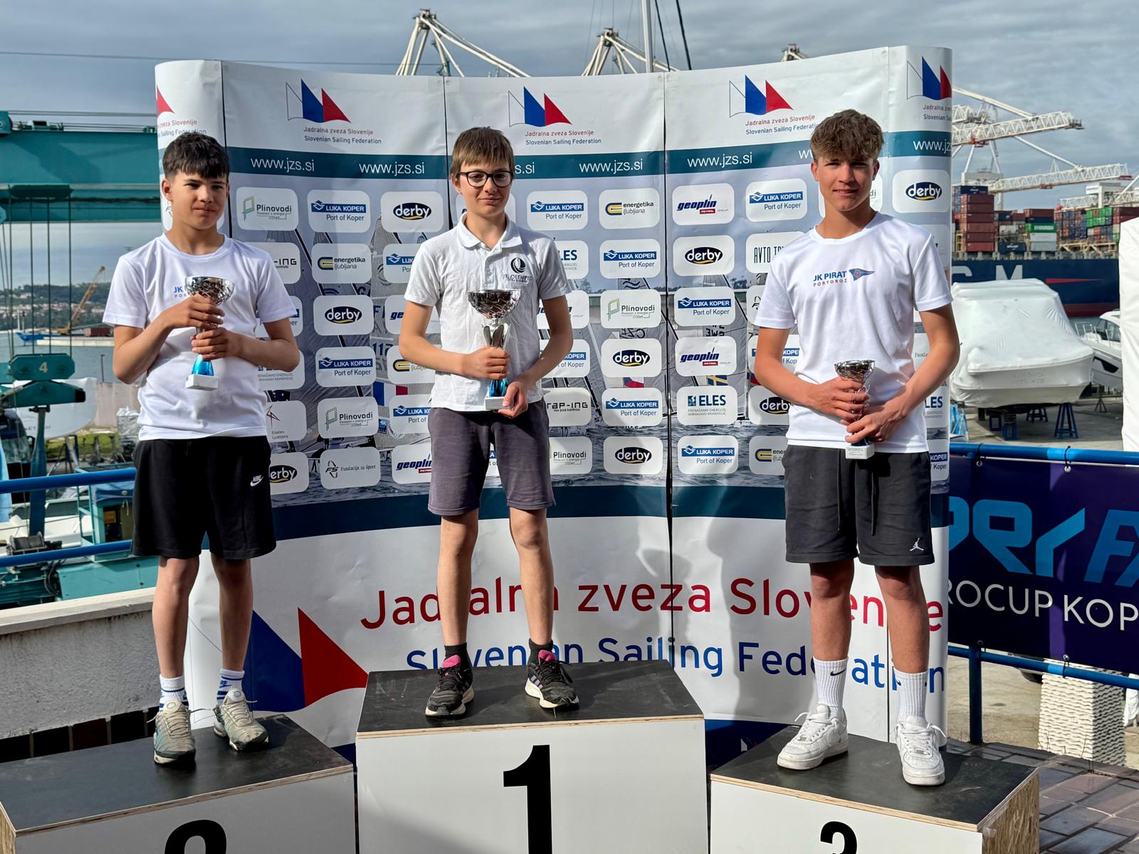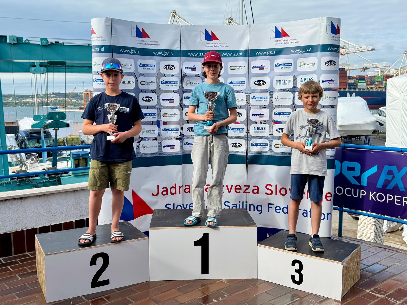 Od prvega dneva dalje sta prvi dve mesti zanesljivo zasedala slovenska jadralca Mihael Zobec (JK Olimpic) in Val Grbec (JK Pirat), ki sta v enakem vrstnem redu tudi končala. Na stopničkah se jima je na tretjem mestu pridružil Filip Luka Butinar (JK Pirat). Tudi deklice so odlična jadrale, tretja je bila jadralka domačega JK Jadro Lara Aurora Hummel. Med fanti do 12 let je zmagal Emanuel Fusil (JK Pirat), tretji je bil Val Gantar (JK Jadro), med dekleti do 12 let pa sta na stopničke prijadrali kar dve – druga je bila Brina Kuhelnik Karo (JK Burja), tretja pa Iva Šarić Travljanin (JK Pirat).