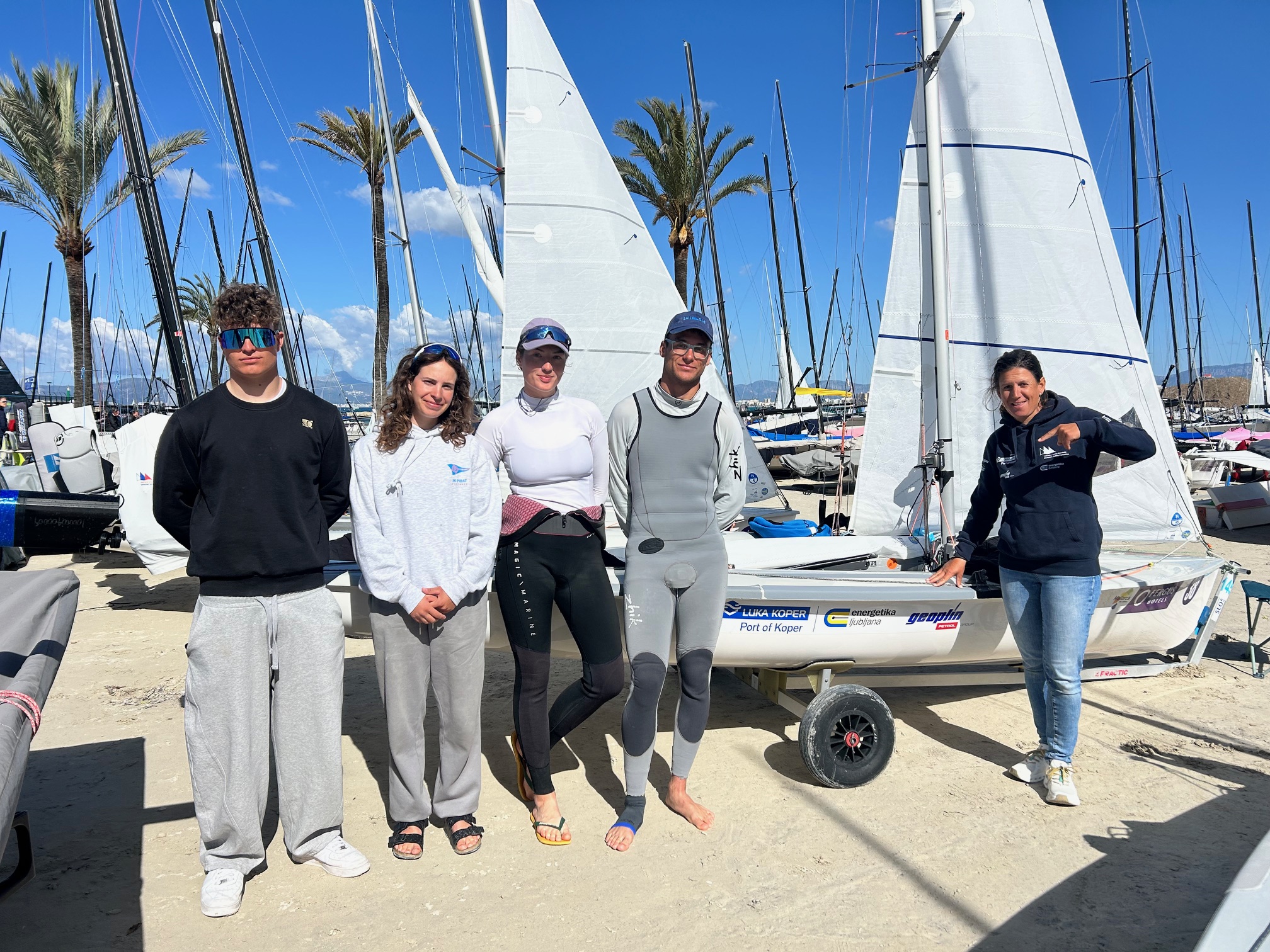 Za slovenskimi jadralci je zadnji regatni dan na letošnjem Pokalu princese Sofie v Palmi na Mallorci. Regatni teden je bil naporen, z veliko čakanja, močno spremenljivim vetrom, ki je obračal po smeri in bil zelo nestanoviten tudi po moči, v enem dnevu so jadralci recimo imeli zjutraj v sunkih blizu 30 vozlov vetra, popoldne pa v istem zalivu pred prestolnico Palma odpovedane regate, saj je bilo vetra premalo. Na regati je nastopilo devet slovenskih jadralk in jadralcev, štirje med njimi še mladinci. Ti so se pomerili v 470 Mixed ter opravili odlično, Martin Fras in Mija Škerlavaj sta presegla zastavljeni cilj – uvrstitev v polovico flote, ter se uvrstila v najboljših 25 in tako v zlato skupino. Regato končujeta na 25. mestu. Druga naša mladinska posadka je po komaj letu jadranja v 470 Mixed zdaj prvič nastopila v članski konkurenci; Teo Gerželj in Ana Planinšič sta se uvrstila v srebrno skupino, tam odjadrala nekaj lepih stranic, in končala na 50. mestu v konkurenci 62 posadk.